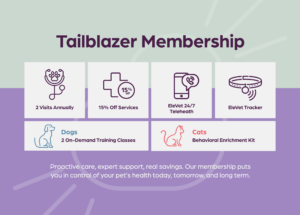 From routine checkups to “is this normal?” moments, Tailblazers Membership has your pet covered—with wellness and illness care savings, 24/7 telehealth, and a smart at-home tracker that keeps an eye on your pet’s health, all in one annual membership paid monthly.